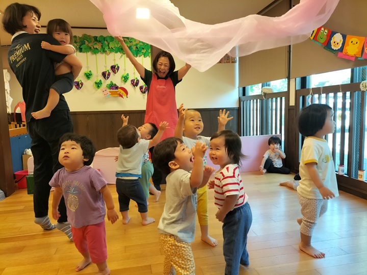 布がふわふわ~~♪みんなで仲良く遊んだね♪