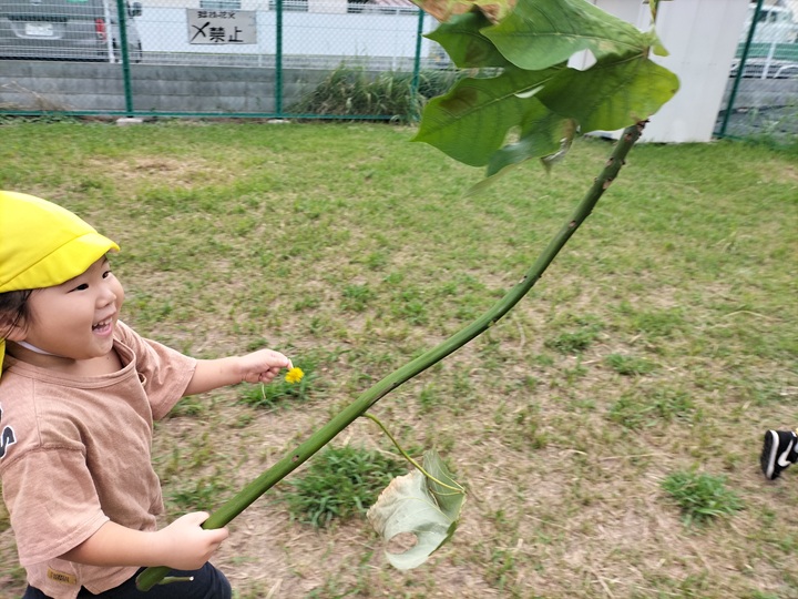 お外では元気いっぱいです!かまきりさんを見つけたよ♪