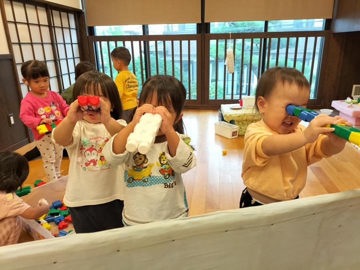 いいもの見つけたかな??みんなでなかよく遊んでいます♪