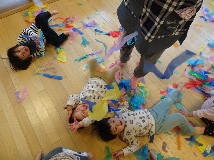 きれいな紙をビリビリして楽しいね♪