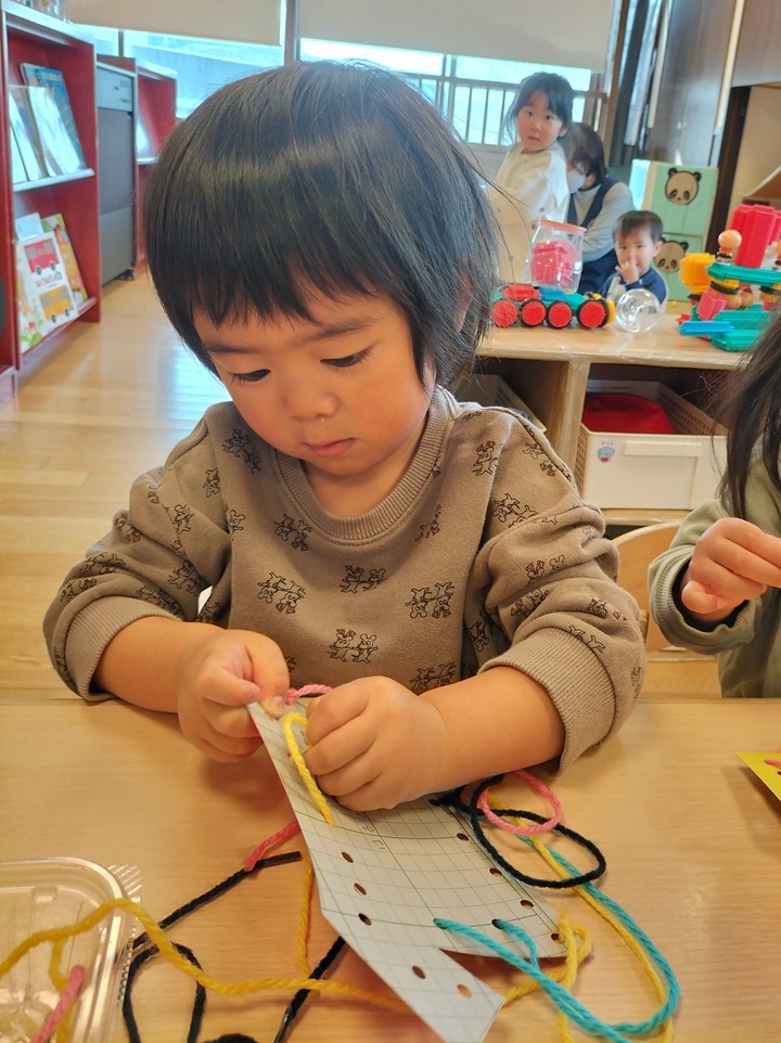 むずかしいひも通しにも挑戦!!どんどん上手になります♪