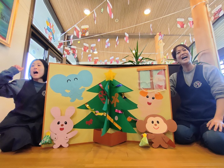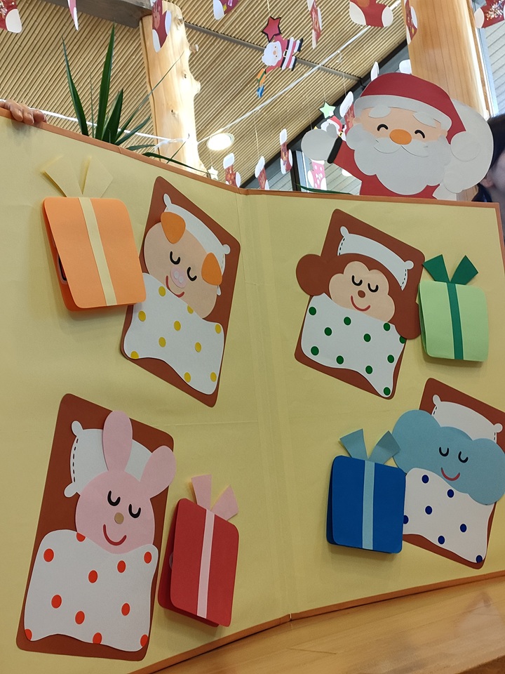 さぁ、クリスマス会が始まります♪大きなクリスマス絵本が登場しました♪