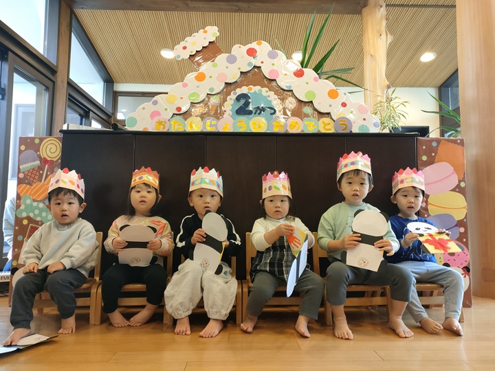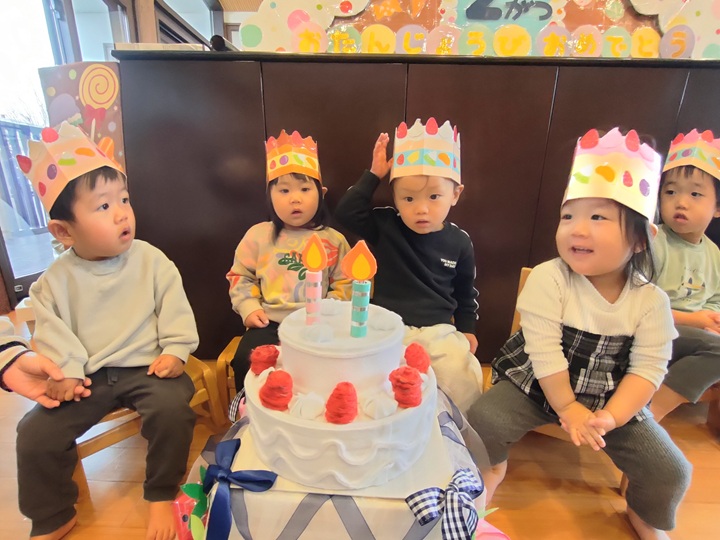 大きなケーキ!!みんなでろうそくをふぅ~♪