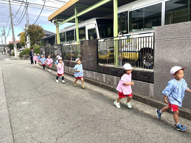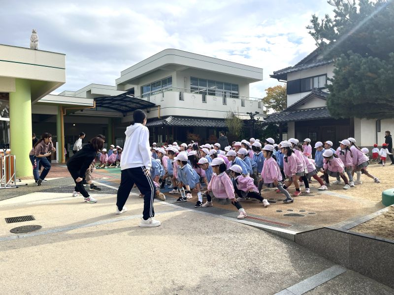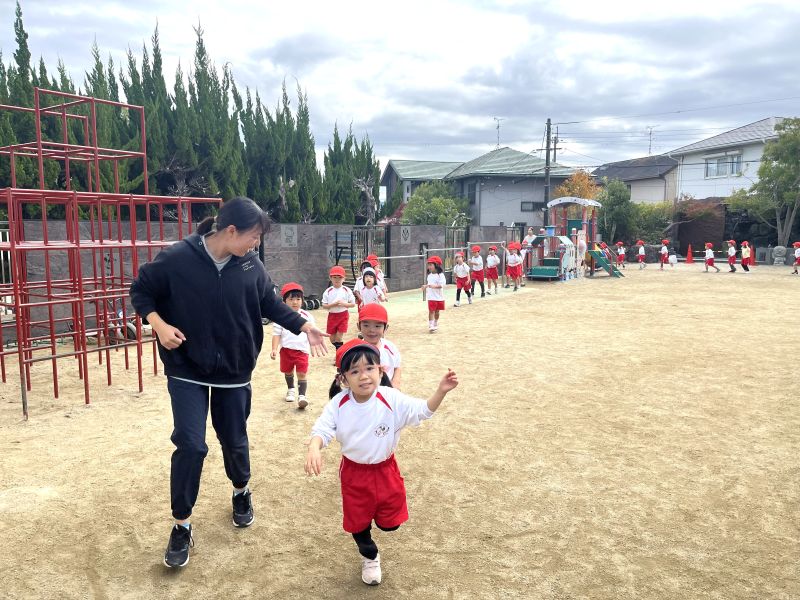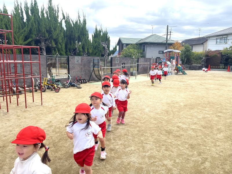 年中組さんと、年長組さんは幼稚園の外周を走ります!