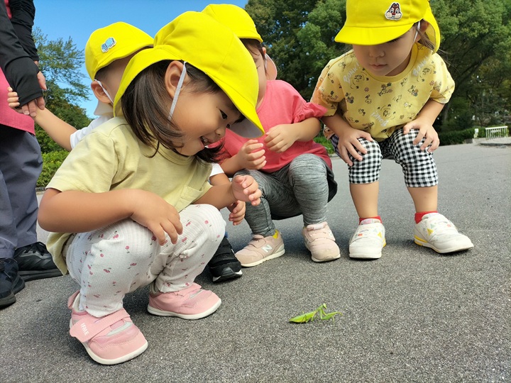 お外では元気いっぱいです!かまきりさんを見つけたよ♪