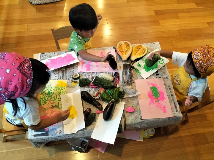 製作もがんばったね♪お野菜ハンコとっても楽しかったね♪