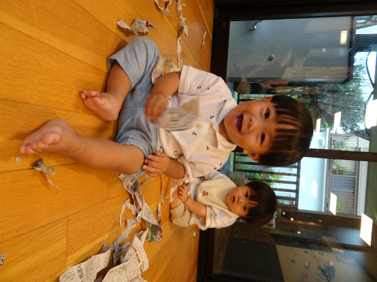 新聞紙をビリビリ~☆
