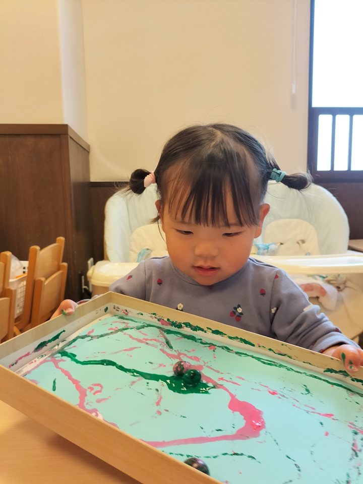 きれいな紙をビリビリして楽しいね♪