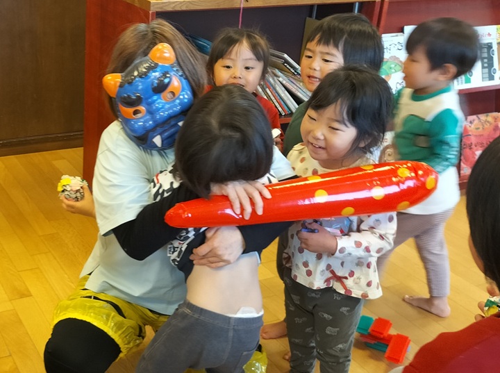 みんなで「鬼は外!!」をして、鬼さんは帰っていきました!!