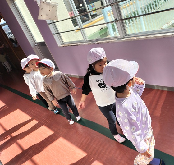 秋頃から2歳児のお友だちは少しづつ幼稚園に遊びにでかけます。