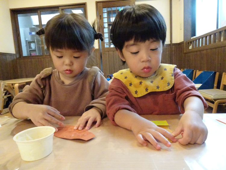 折り紙をちぎって貼ります♪
