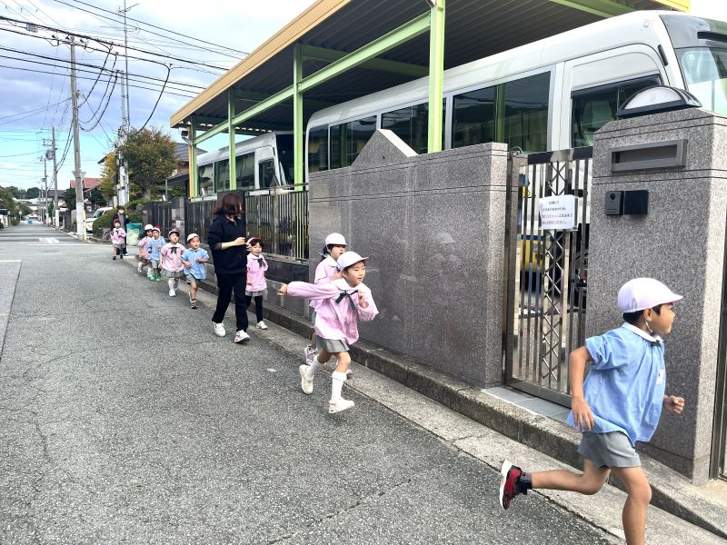 年中組さんと、年長組さんは幼稚園の外周を走ります!