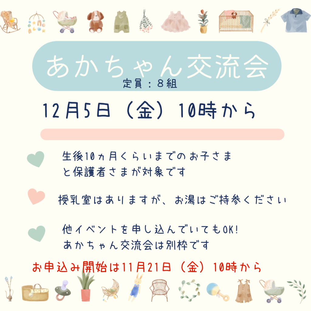 こちらのイベントは全て予約制となっておりますので、予約開始日時にwebでご予約ください。ご予約方法については、過去のお知らせでご案内しておりますのでご参照ください。